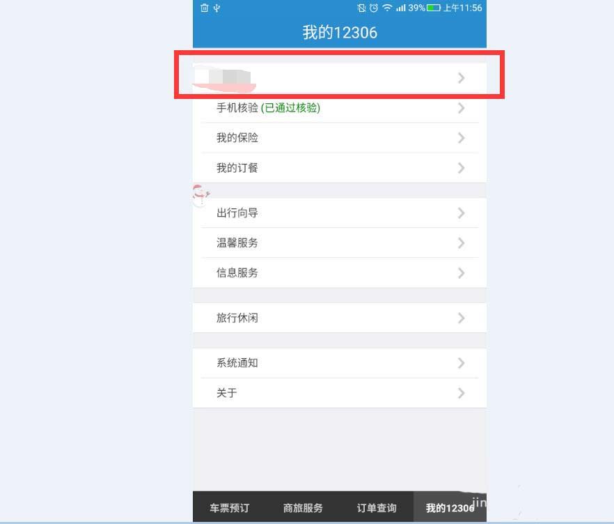 3、在“我的12306”里面,我们点击第一行我们的名字