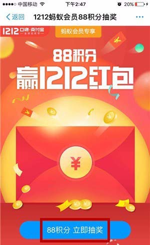 支付宝中想要赢1212红包,该怎么使用蚂蚁积分抽奖呢?下面我们就来看看详细的教程。