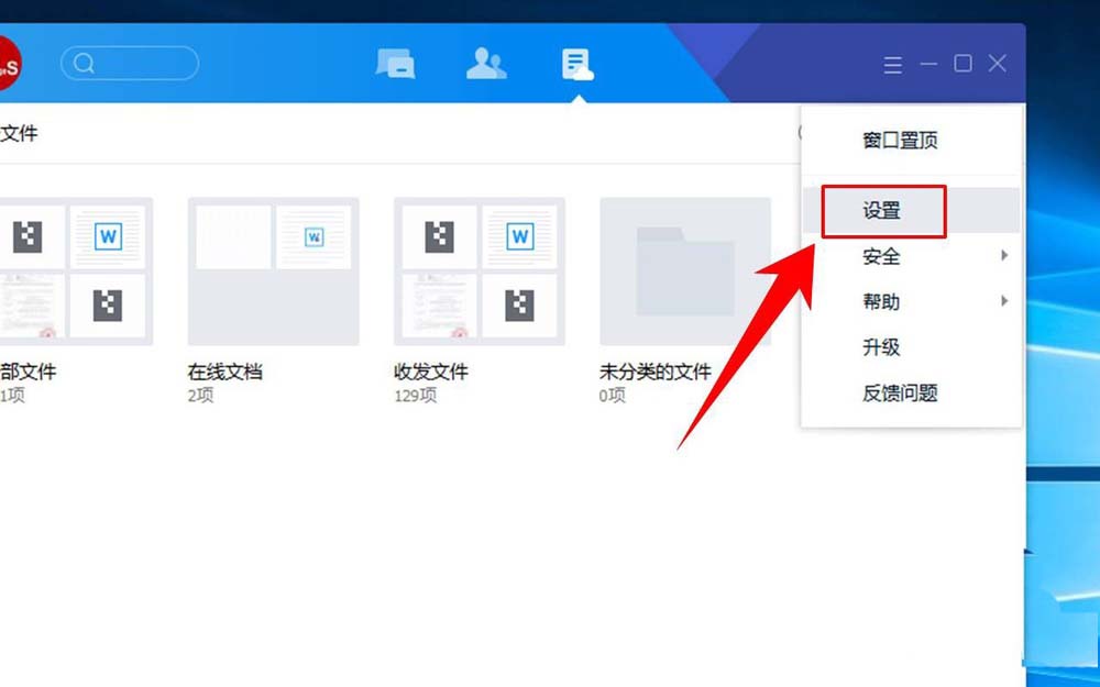 2、登录完成后,在TIM最下方的菜单栏中点击手提包形状的图标,然后再在页面的右上角点击六边形图标,如图所示,进入设置界面。