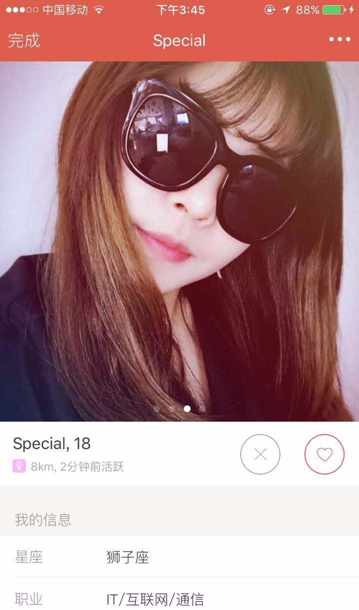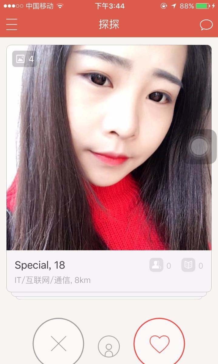 5、右滑所有你匹配到的用户:如果你真的非常好奇,这个时候是谁喜欢你的话,在你进行定位(开始搜索匹配用户)之后,你不妨把所有你匹配到的用户,都进行右滑,哪个跟你配对成功了,哪个就是刚刚喜欢你的人。