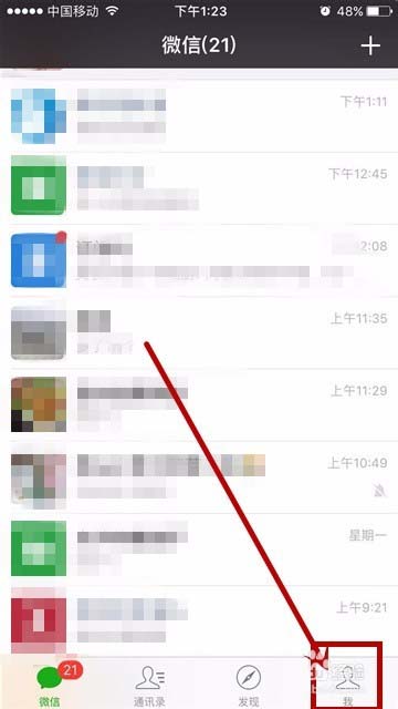 2、点击微信首页右下角的“我”页面切换按钮
