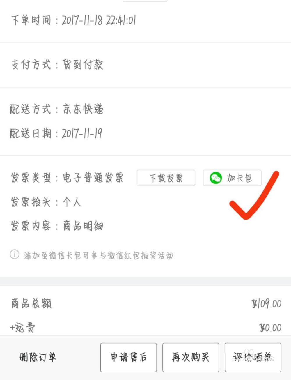 京东中很多商品可以开电子发票,电子发票可以下载保存,也可以关联微信号,然后把电子发票加到微信卡包,活动期还有一次抽奖的机会哦,该怎么将电子发票添加到微信卡包呢?下面我们就来看看详细的教程。