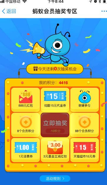 2、抽奖,这个是必须要有的,趣味性多,而且有可能抽中好东西,有可能抽中高额元红包,10积分一次。