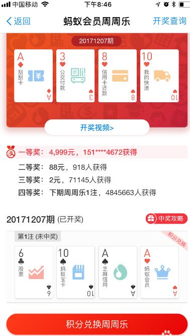 4、周周乐,这个也是必须要买的,因为如果运气好,可以中得4999元大奖哦。