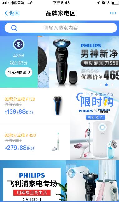 9、如果您想买一些东西,可以去食品和电器专区,不过我并不建议您用这种方式消耗积分,性价比相对有些太低了。
