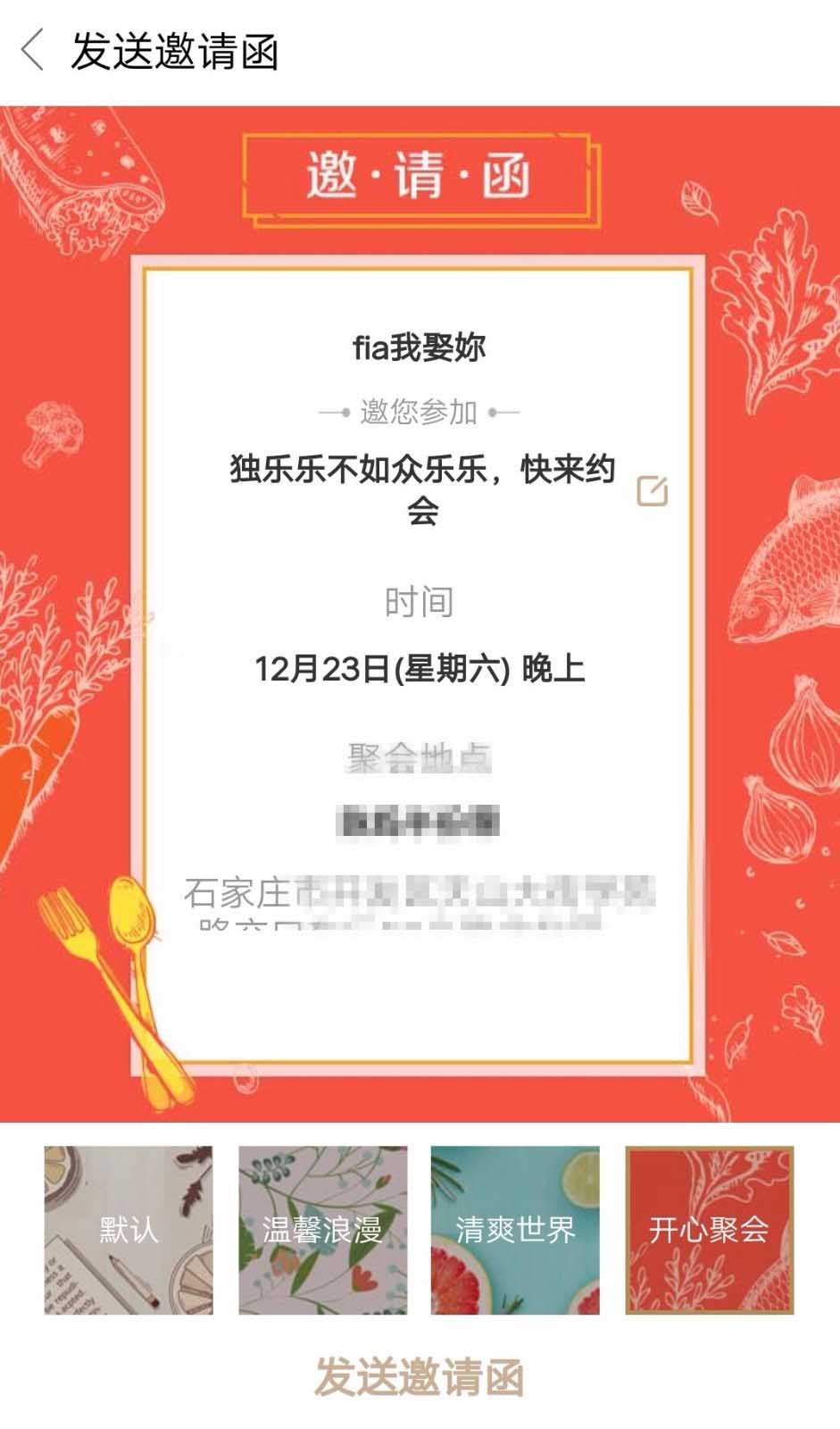6、选择好时间和日期,我们选择生成邀请函,可以通过很多方式发给好友邀请他们。
