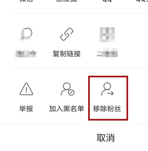 5、弹出对话框,选择”移除粉丝“,就移除了。