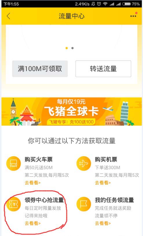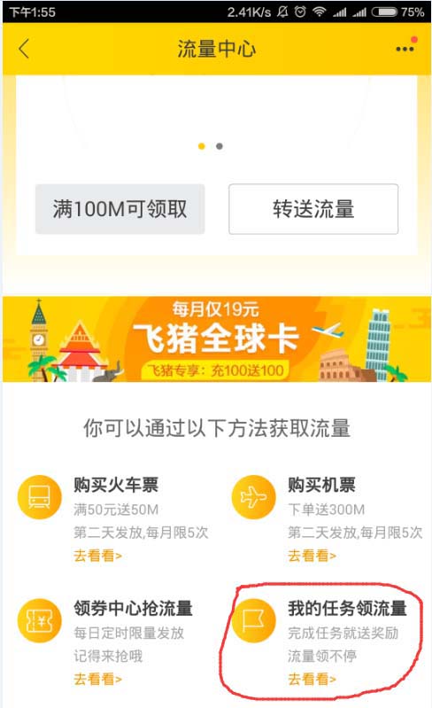 飞猪app中每天可以领取60M流量,很多朋友不知道该怎么领取,下面我们就来看看详细的领取方法。