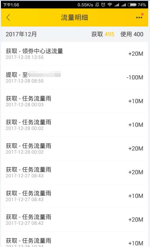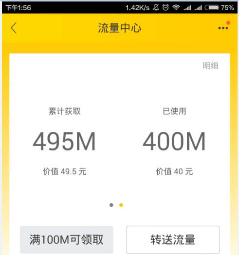 6、领取到这么多流量后,可以自己提取也可以转赠给好友,满100M就可以提取或者转赠了,每个月最高可以领取到500M国内流量,挺划算的,每个月又可以重新获取,可以省差不多40到50元