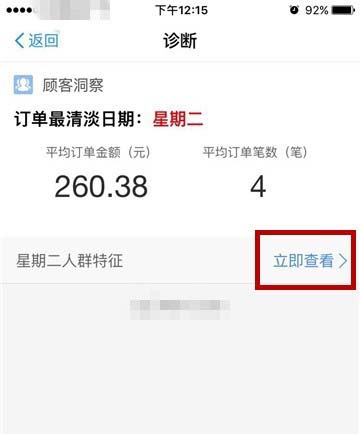 6、点击当天的人群特征“立即查看”按钮,还可以查看当天消费人群的一些基本情况(顾客画像)。