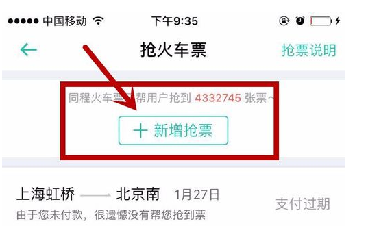 3、点击【新增抢票】,