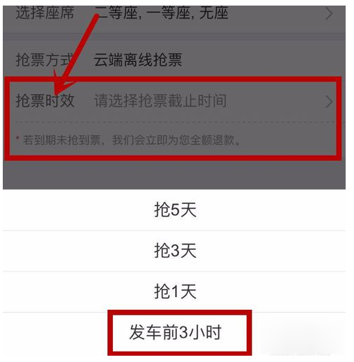 6、选择抢票时效(抢票时效就是你想软件帮你刷多久,建议选择发车前三小时)选择下一步,