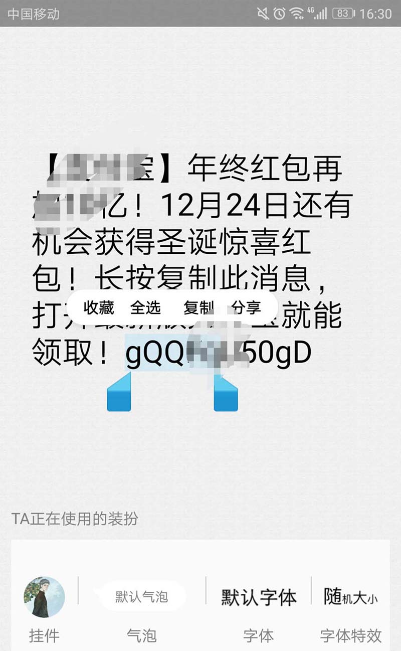 1、qq收到你朋友分享给你支付宝口令,打开那个信息。双击点开可以装饰。