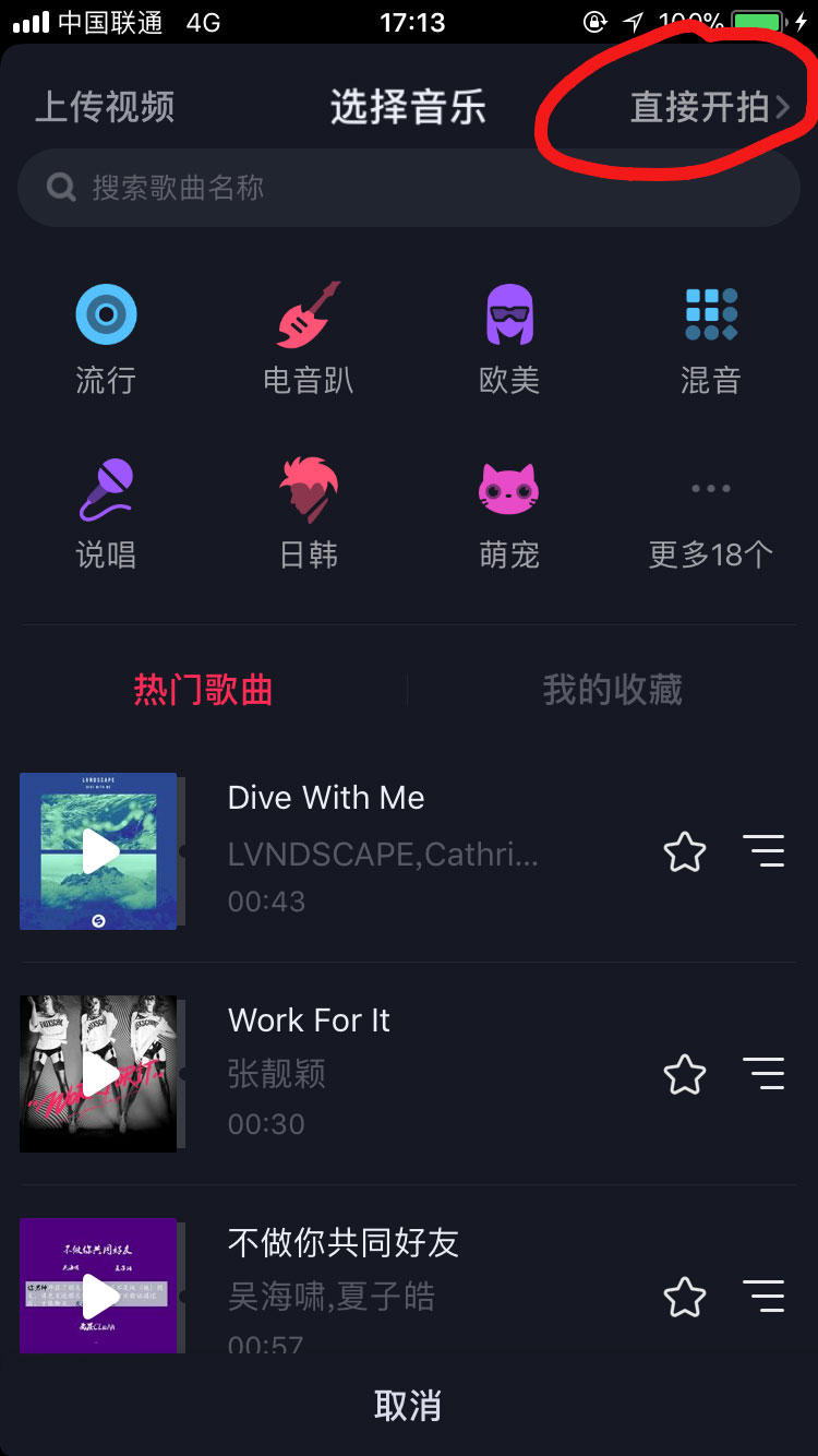 2、进来之后,我们注意看右上角,有一个直接开拍的功能,我们点击它进入视频拍摄界面
