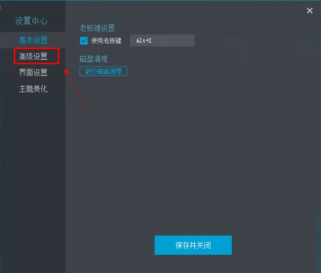 4、进入设置中心后,选择高级设置选项,如下图所示