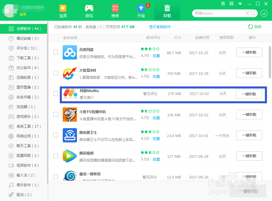 1、有卸载类的工具软件——卸载界面——网易MuMu——卸载