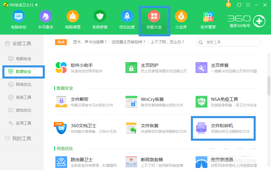 2、360安全卫士自带的粉碎机粉碎