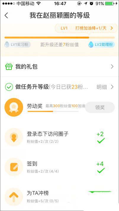 7、这就算完成签到任务了,该明星会获得一定的粉丝影响值;