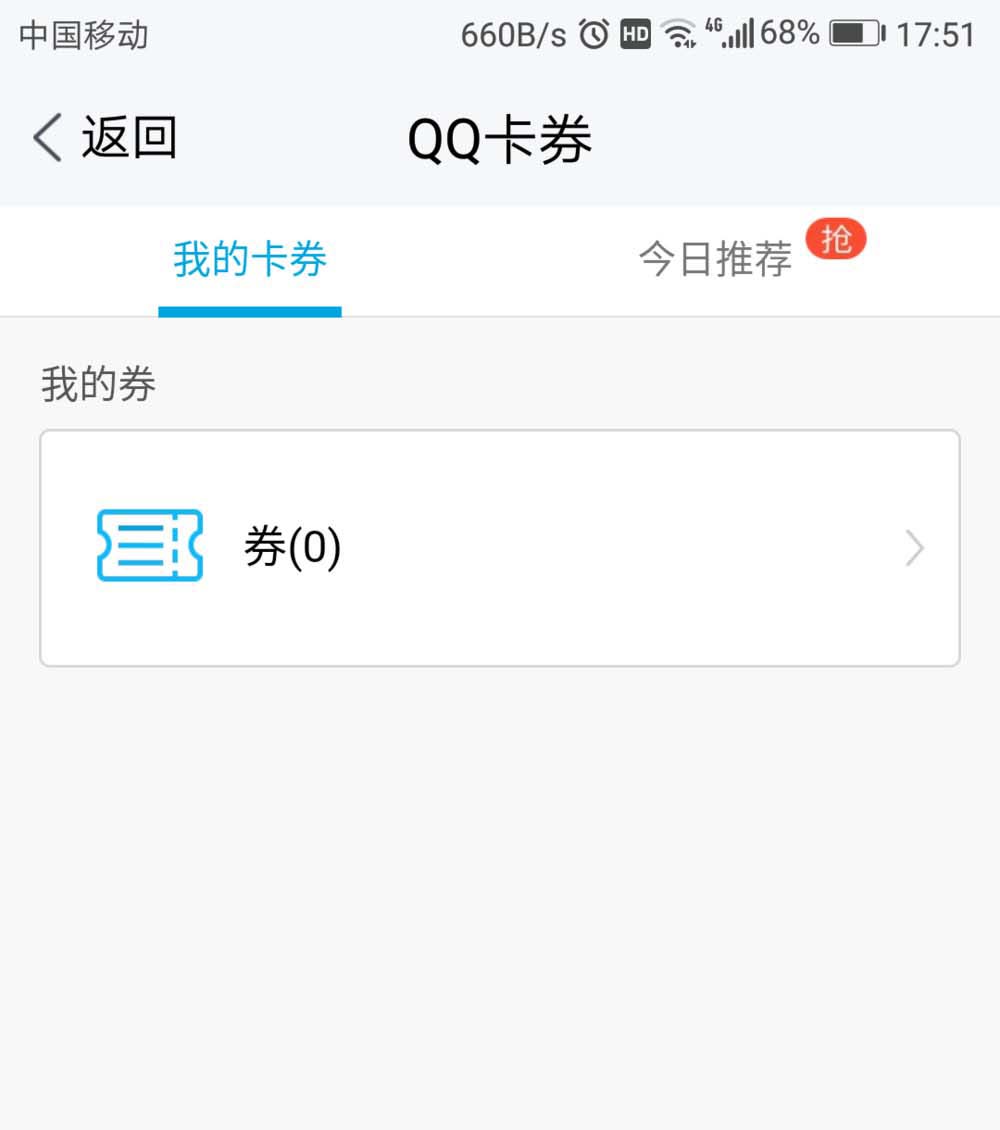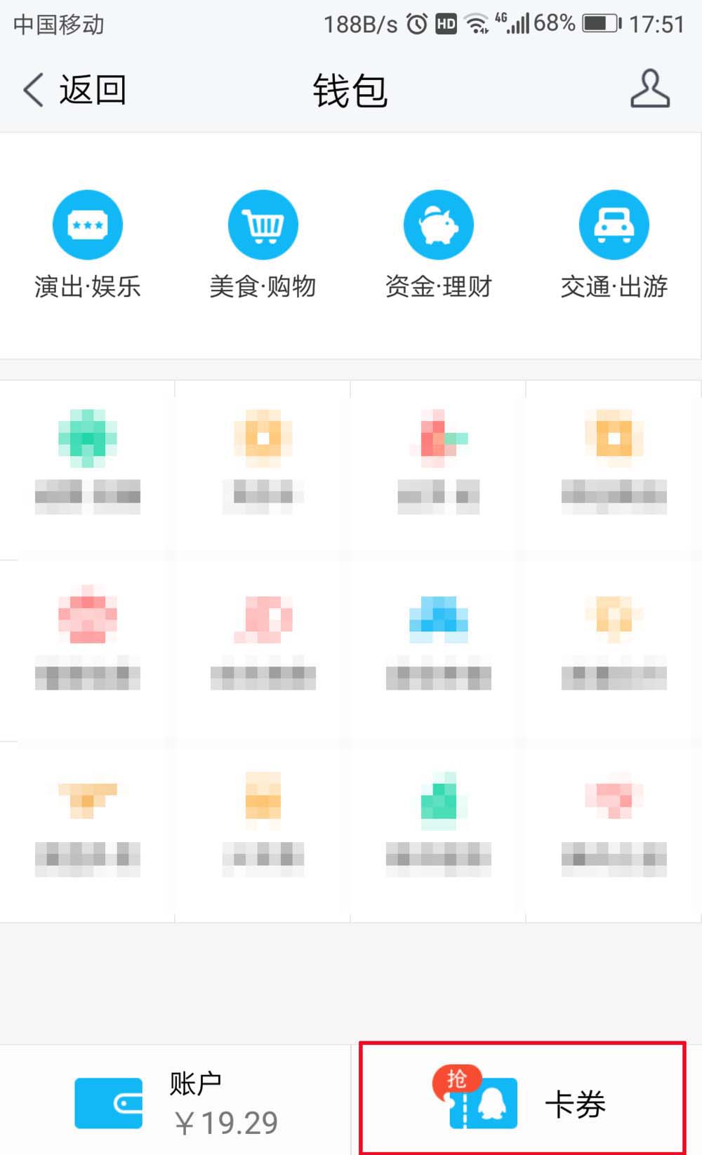 6、大家要是想看自己已经得到的卡券的话,点击这个就可以了。
