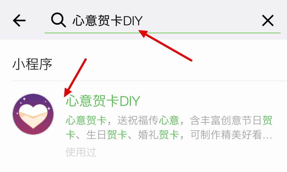 5、这时我们在上面的输入框中写入“心意贺卡”,就会加载出“心意贺卡DIY”。