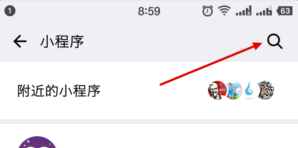 4、进入小程序以后,我们点击右上角的“放大镜”图标。