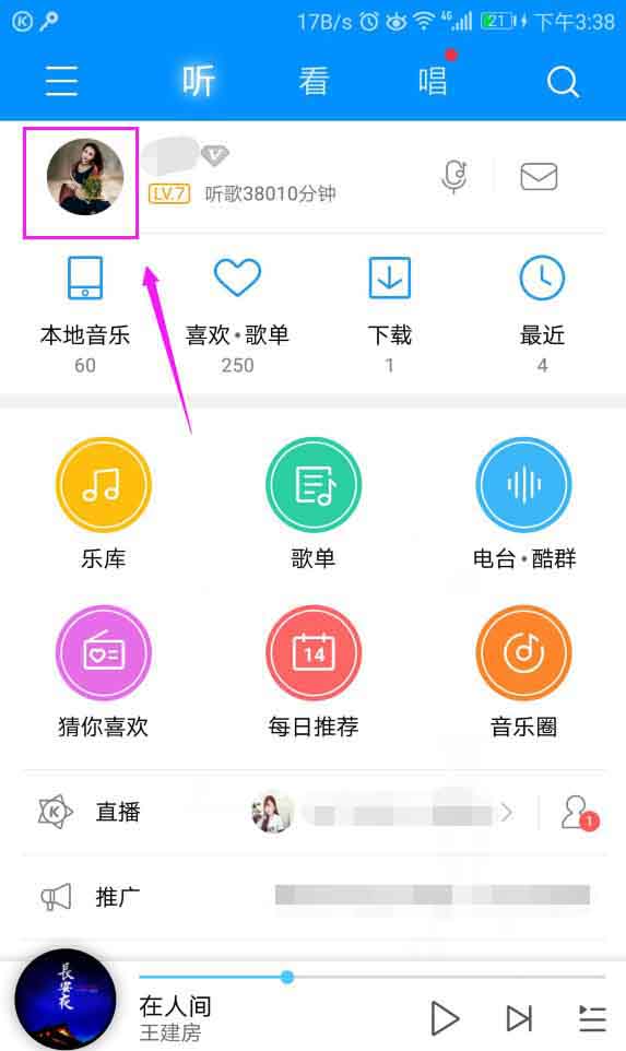 1、来到了酷狗音乐,我们点击自己的头像,如图。