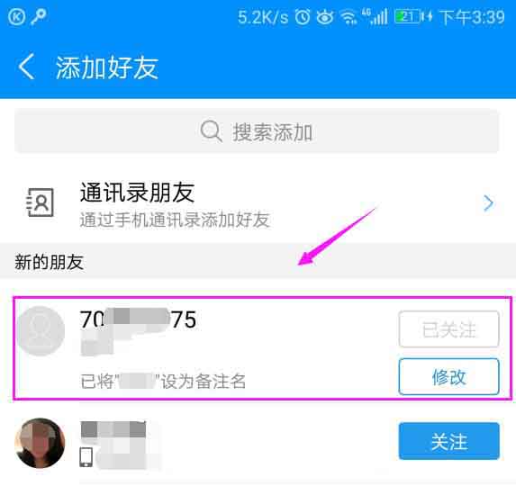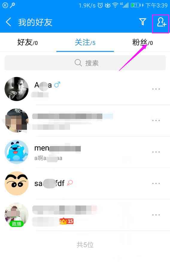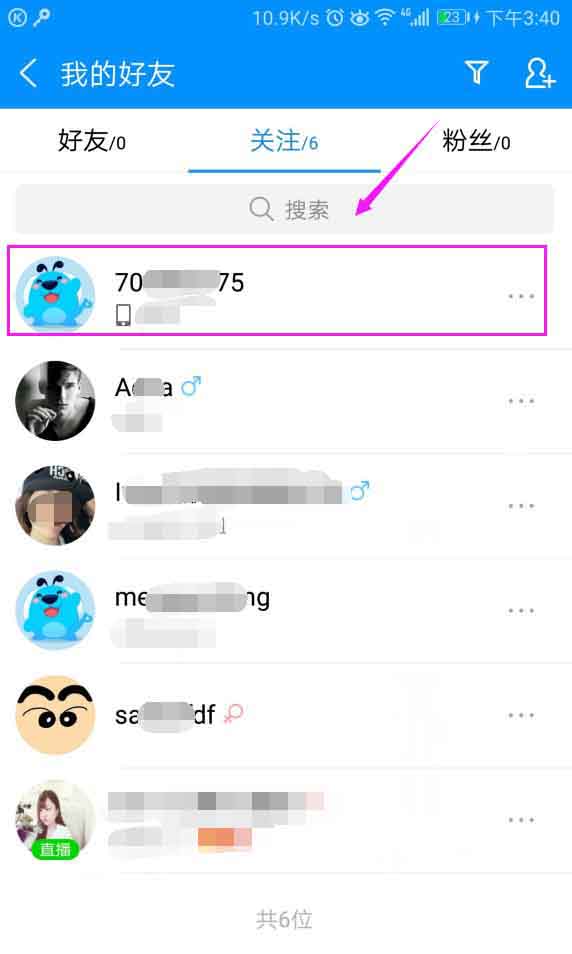 5、我们接着回到关注页面,就可以看到刚刚关注的已经在关注里面了,如图。