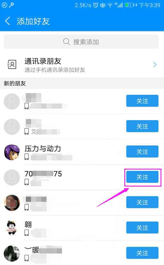 2、我们点击“关注”,如图。