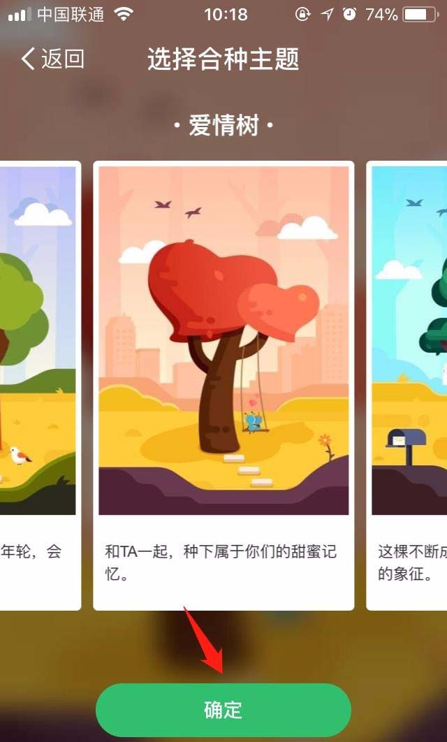 3、合伙种树的类型是可以选择,以我们选择的友情树为例,选中之后就可以点击下方的确定选项了。