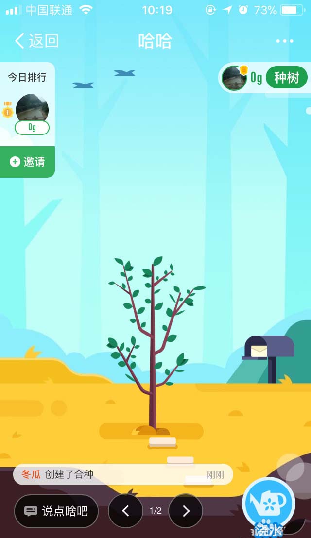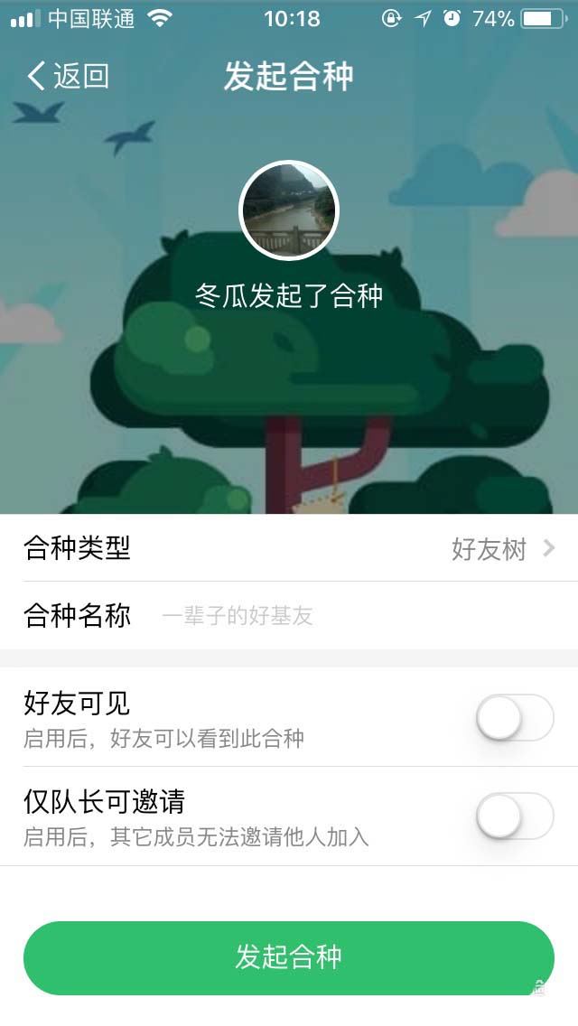 5、在发起合种的界面,我们可以邀请好友,当然也可以在合种发起完成以后再进行邀请,界面顶部的文字,就是显示这棵树的名字。
