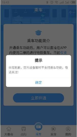metro大都会app提示您的设备暂时不支持乘车功能怎么回事?