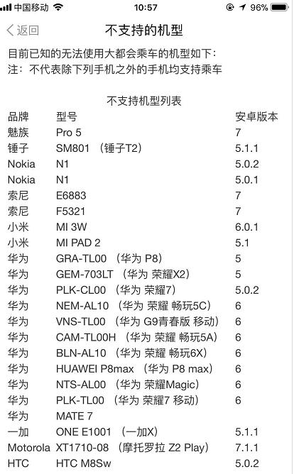 上海地铁正在全面试行支付宝支付,只要你安装或升级到最新版“Metro大都会”App,绑定支付宝,就能实现扫码乘车。如果你的手机是以下这些机型,就暂时不能使用该功能了,如图: