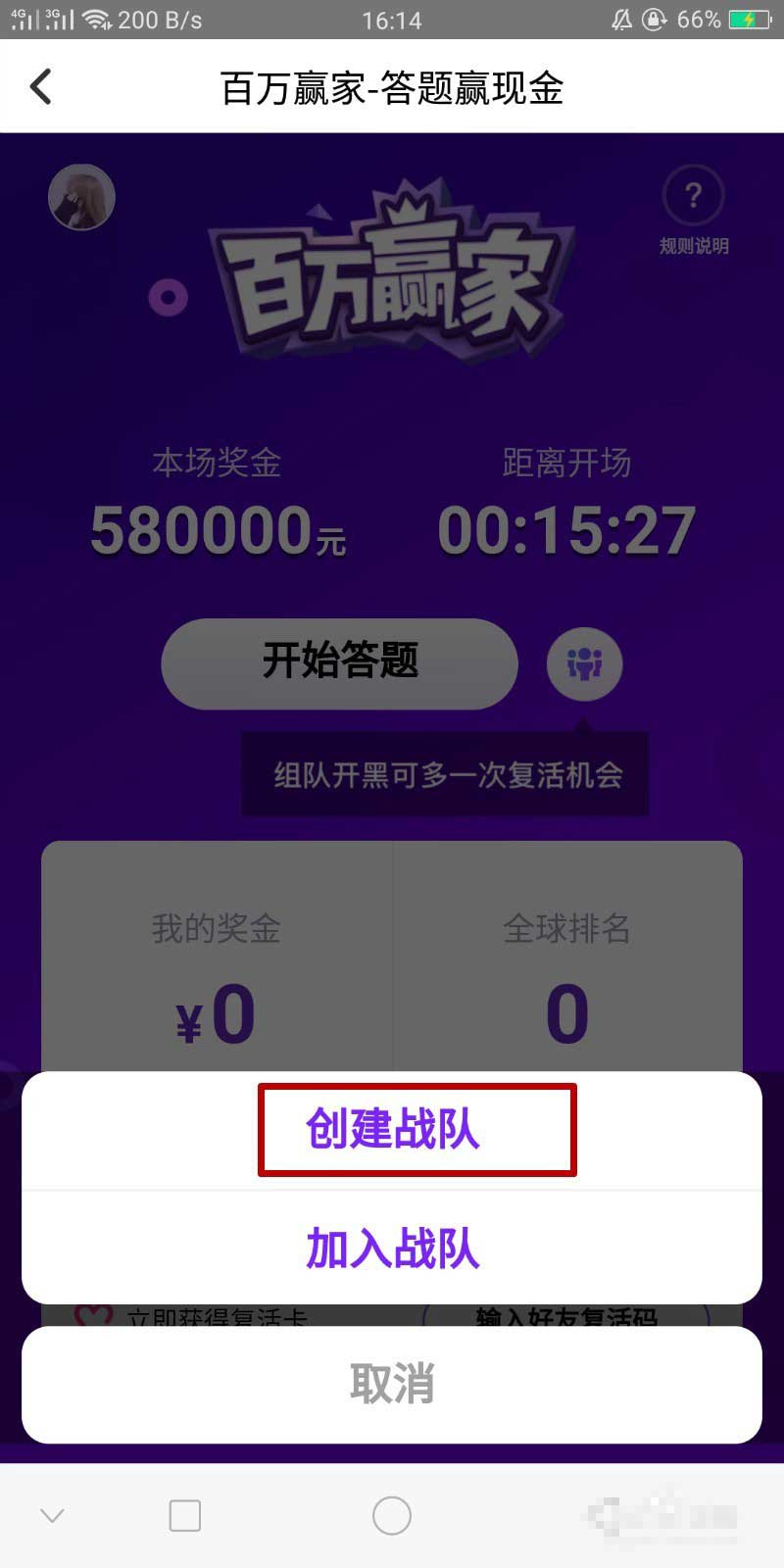 4、选择创建战队则是自己选择邀请好友组队参加,或者点击加入战队,输入好友的战队号即可。小编教给大家怎样邀请好友参加,所以我们要点击创建战队。