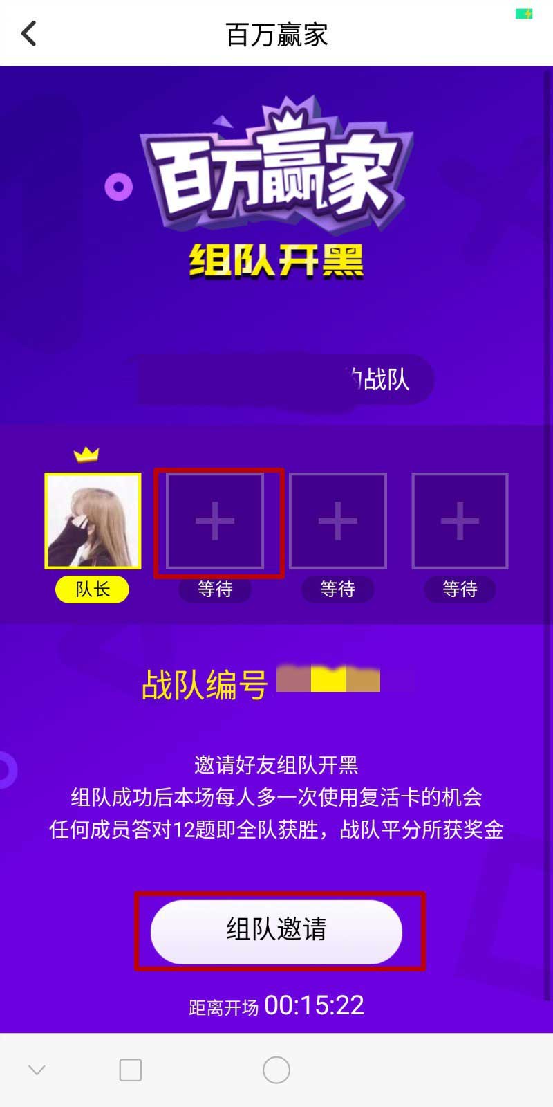 百万赢家组队开黑怎么玩?很多朋友都知道有百万赢家这个活动并参与进来。那么不知道你们是否知道百万赢家可以组队答题呢?组队答题可以多获得一次复活机会。那么,怎么才能邀请好友组队答题呢?接下来小编就给大家说说百万赢家邀请好友组队开黑的方法步骤,一起去看看吧!