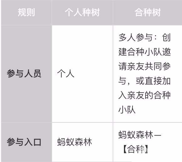 1、蚂蚁森林中个人种树、合种树的操作平台,当然都是基于蚂蚁森林界面,在参与人员方面,个人种树只是个人行为,合种树则是和你的支付宝好友一块,显然互动性合种树更强。