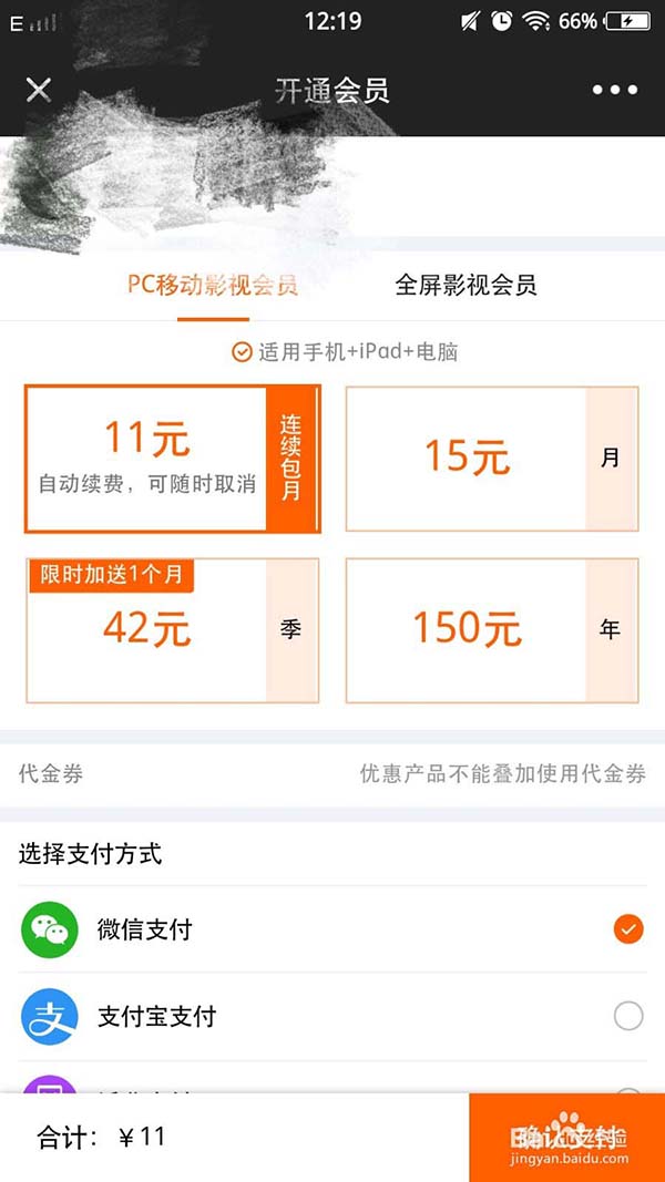 4、登陆过之后返回我的页面,点击开通会员。分为两种会员PC移动端会员和全屏影视会员,根据个人需求选择;