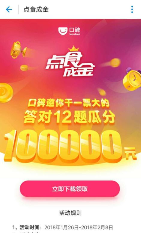 支付宝口碑点食成金答题活动才出来没有多长时间,很多人都只是玩了一次,却不知道支付宝口碑点食成金答题什么时候开始,有的网友还没有玩过,也不知道入口在哪,下面小编就简单的给大家介绍一下吧!