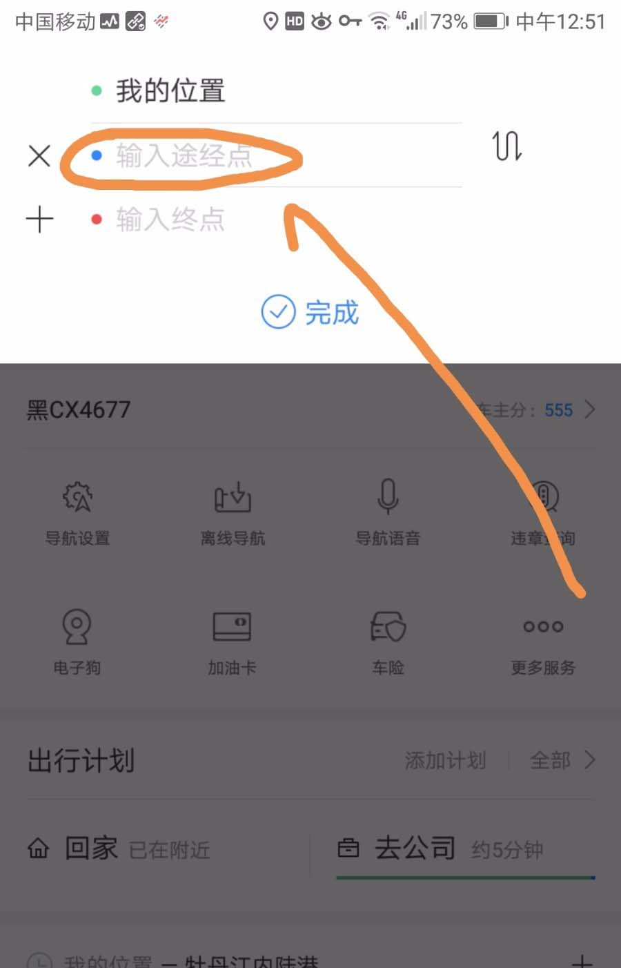 4、点按完加号后会在界面中出现输入途经点文本框,如下图所示。