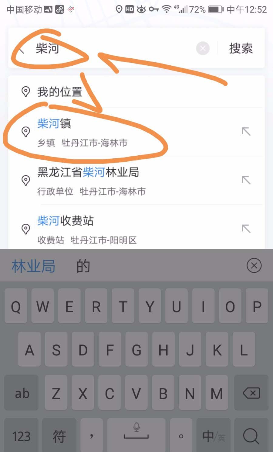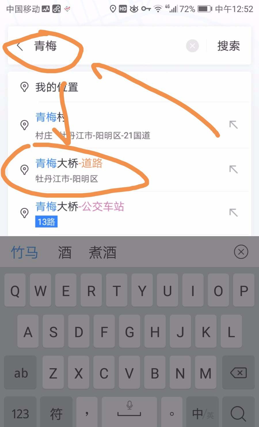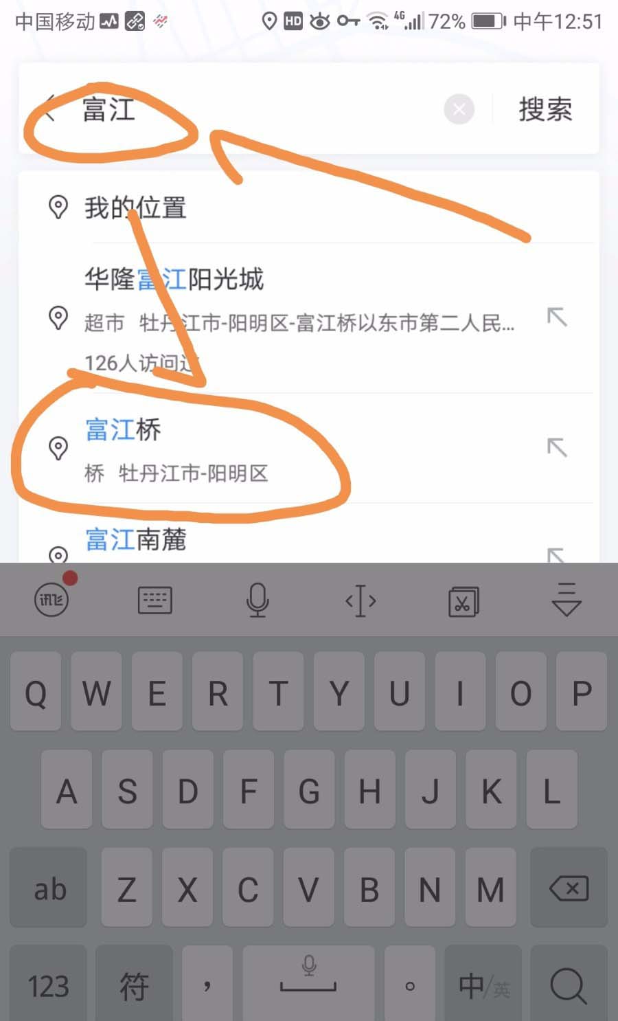 5、在其中输入第一个途经点名所包含的关键字,然后在下方点按途经点名。