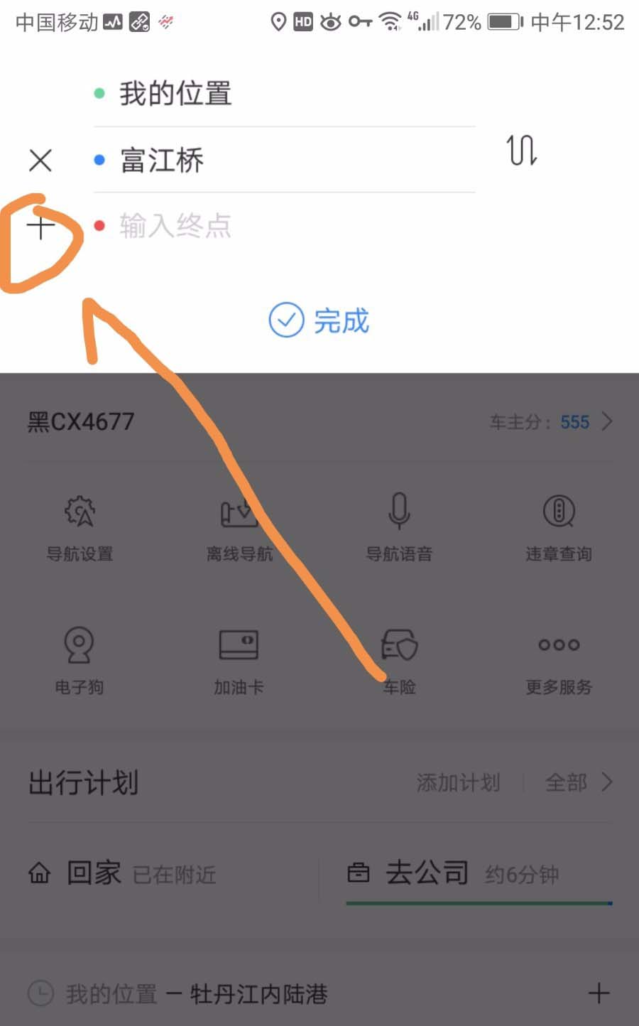6、如果需要输入第二个途经点,继续点按加号标志,如下图所示。