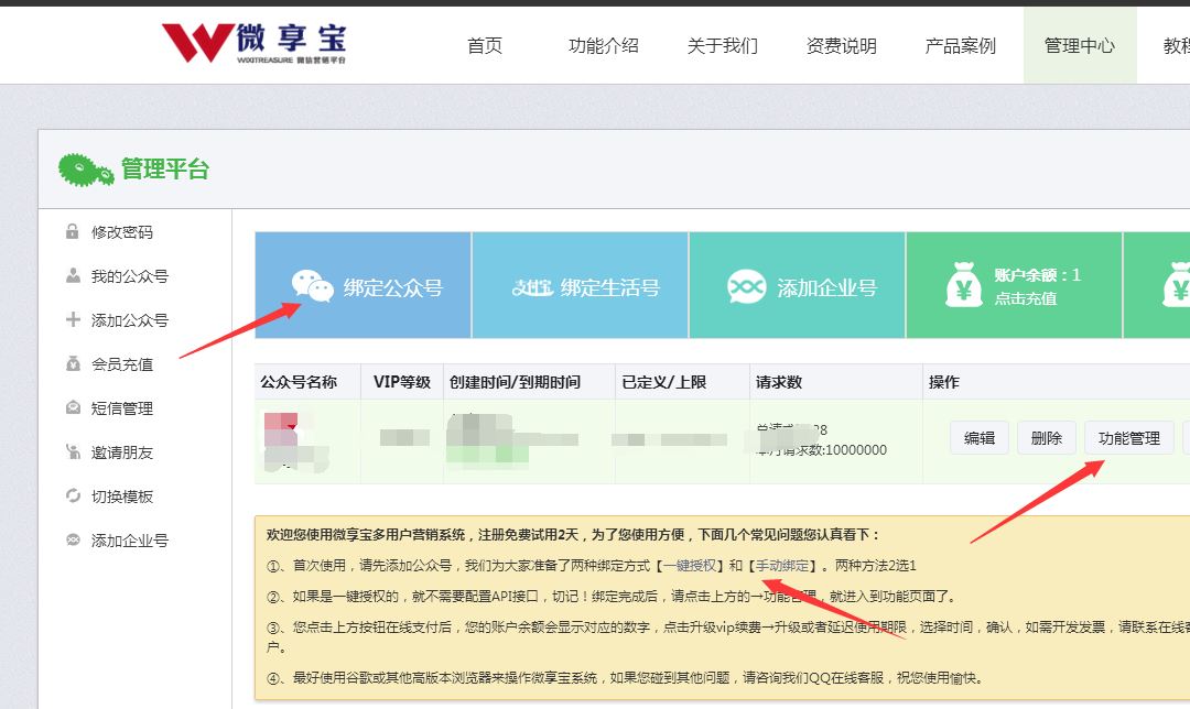 1.公众号的类型可以是订阅号或者服务号,没认证过的也可以,然后需要用到微享宝平台,登陆以后然后通过扫码授权或者手动配置API的方式把公众号接入到微享宝微信第三方平台