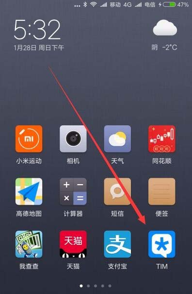 1、在手机上滑动屏幕,找到并点击已安装好的TIM图标。