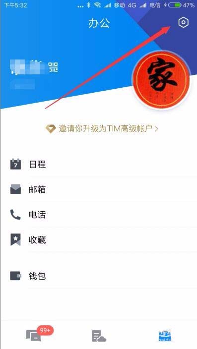 3、这时就会打开TIM的办公页面,点击右上角的“设置”图标。