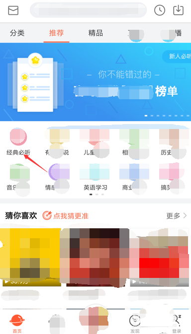 1、打开手机上的喜马拉雅FM应用,在首页选择一个自己想听的分类,进入到该分类下的栏目列表页。