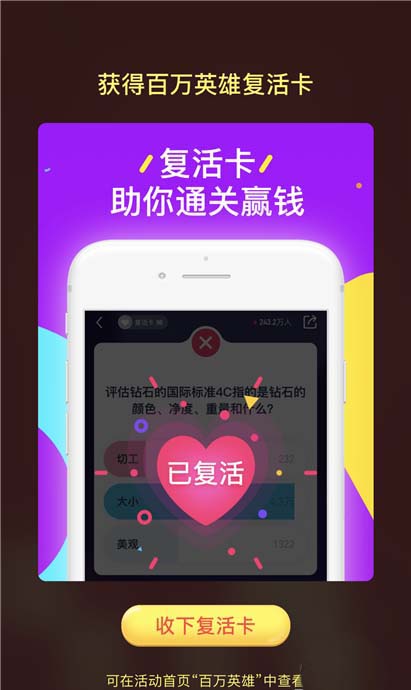 7、礼包里面也有可能是复活卡,这样我们在进行答题的时候也能用的上,还是不错的。