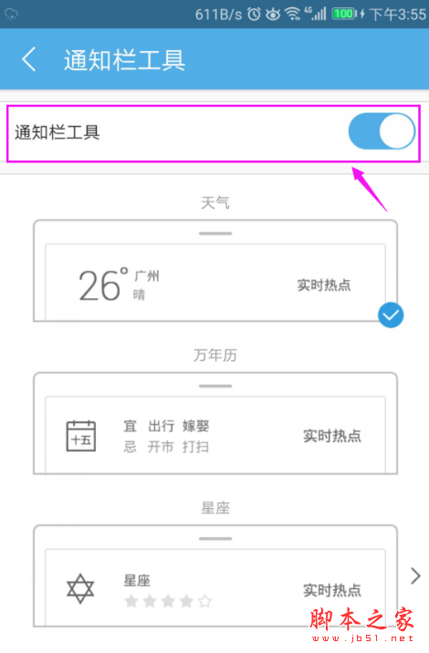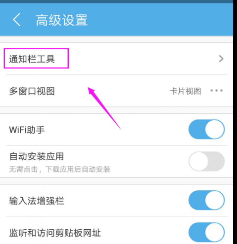 4、接着在高级设置页面,我们选择“通知栏工具”,如图。
