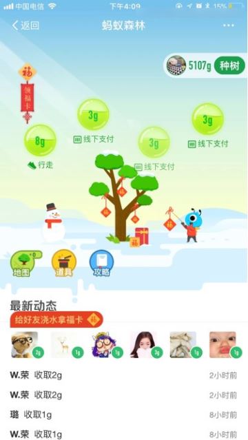 在2月8日-2月15日开始种树或给好友浇水即可得福卡。此外,开通“蚂蚁森林”,或者帮通讯录好友浇水,duang!福卡到手。