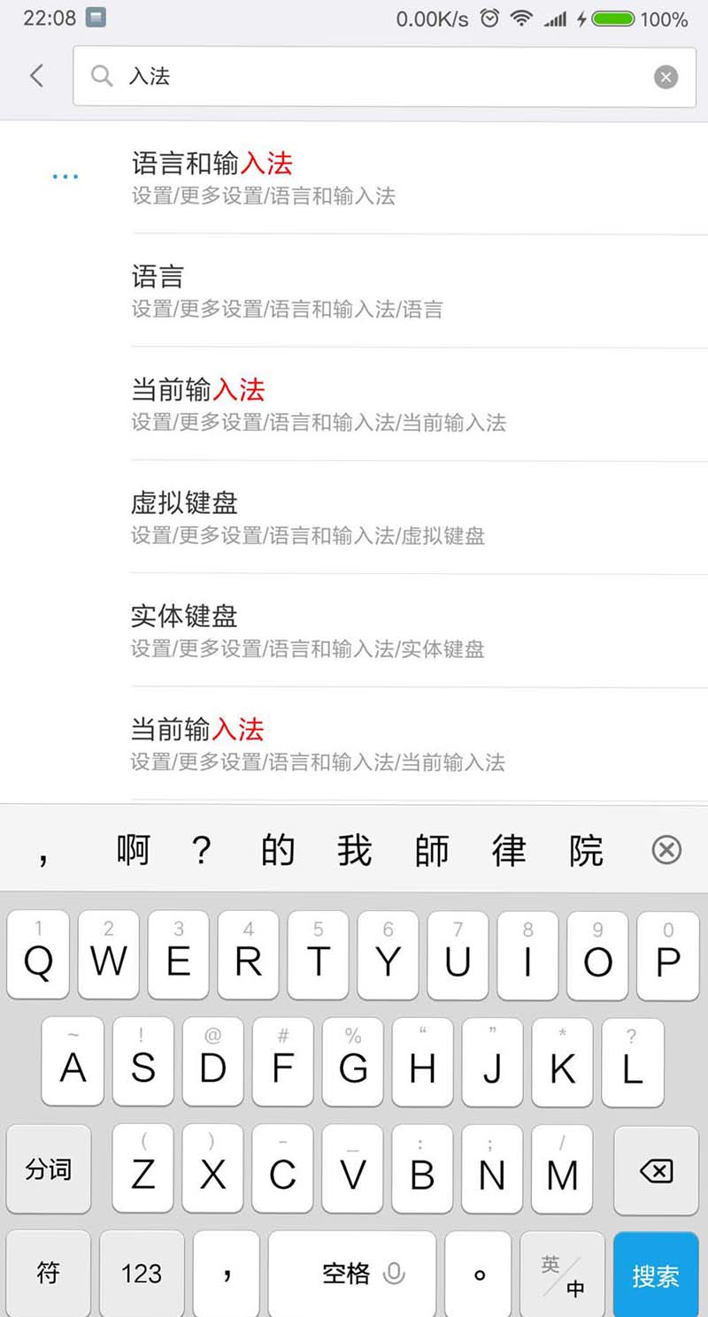 2、找到输入法设置,如果设置页面可以搜索的话,搜索"输入法"