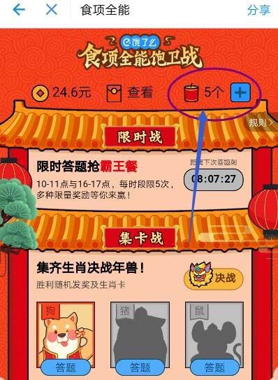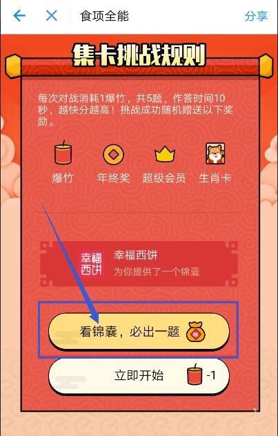 4、打开后系统会送给你几个鞭炮,可以用于答题。选择一个生肖答题。