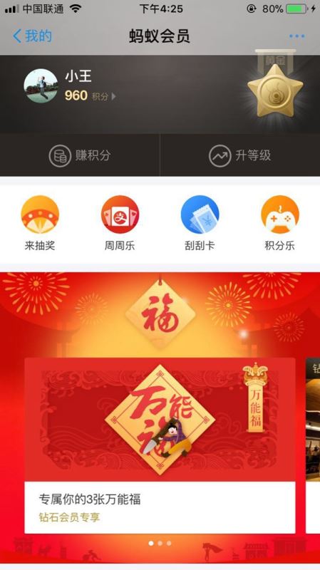 若是钻石会员,可以到我的-蚂蚁会员领取万能福,如果没有领取入口或领取不成功可以反馈给支付宝客服。